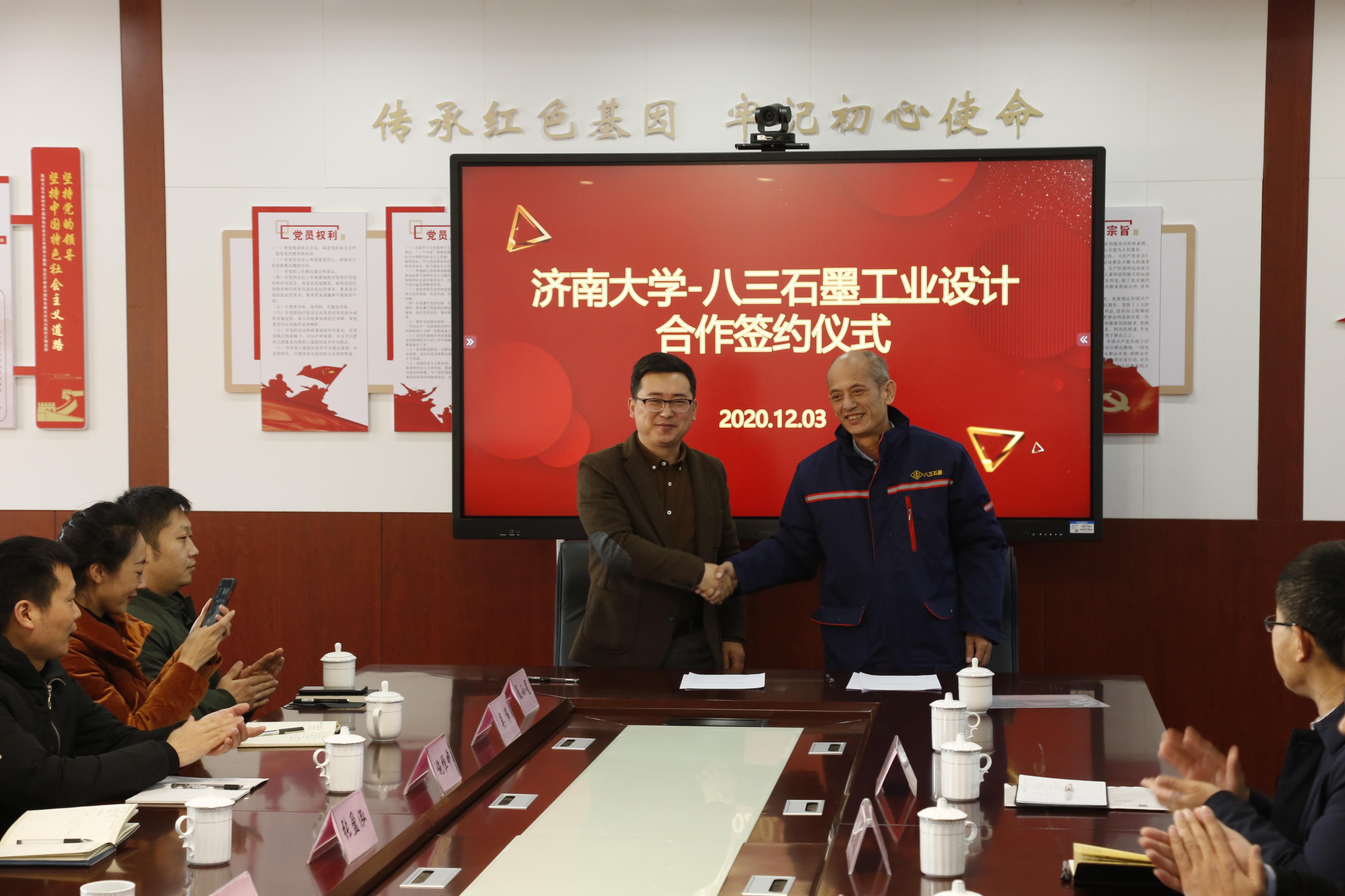 为加快实施创新驱动发展战略,加强产学研合作,济南大学美术与设计学院与山东八三石墨新材料厂在多年交流合作的基础上,本着“优势互补,共同发展,合作双赢”的原则,经友好协商,在充分表达各自意愿的前提下,决定建立互相支持、互相依托、共同发展的长期战略合作关系。