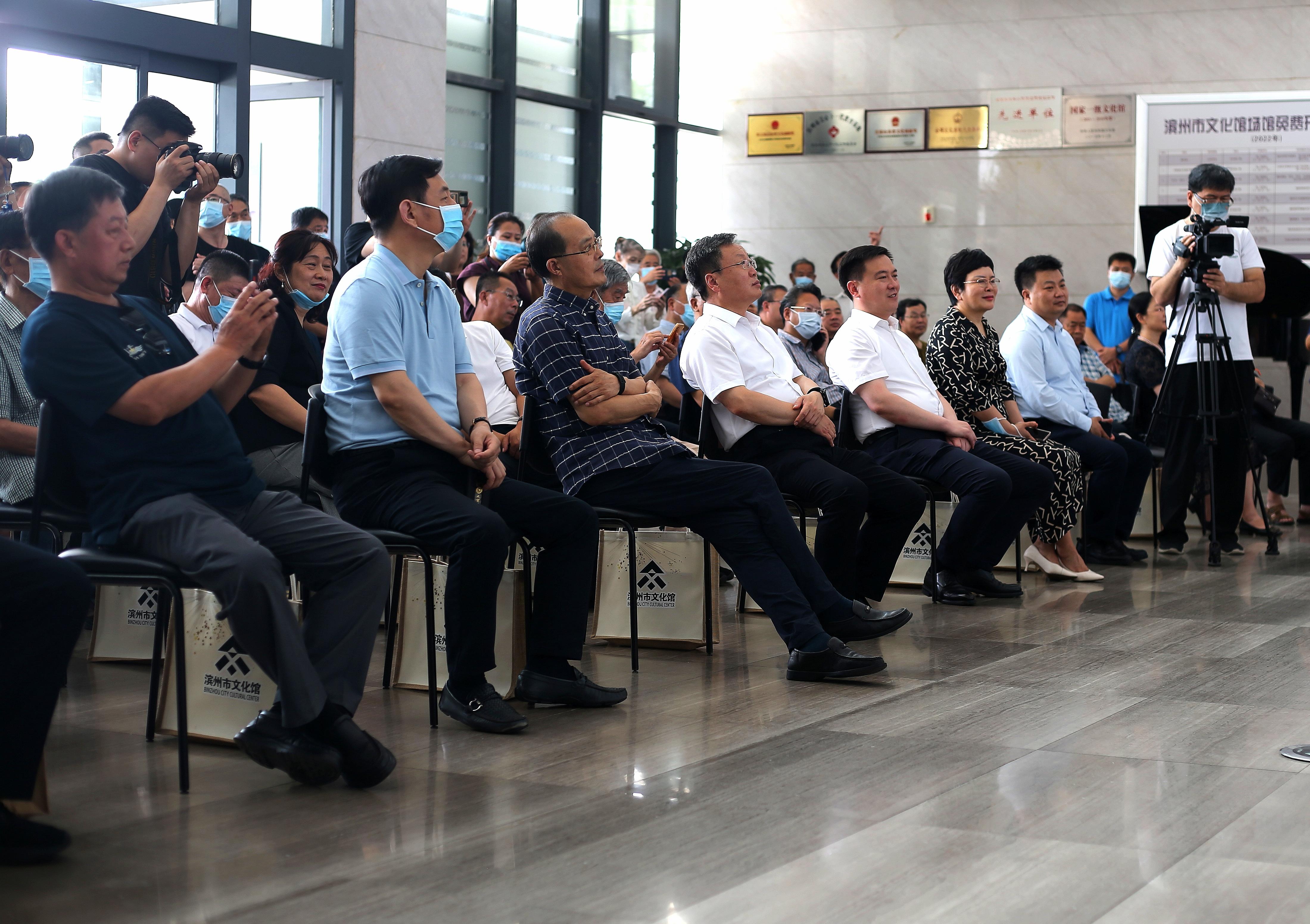 校长张士强、社科处处长张守凤、美术学院院长陈忠洲、美术学院党委书记孙成豪、滨州市相关负责领导、滨州市美协主席、著名书画家等共同出席了开幕式。开幕式由滨州市文化和旅游局党组书记、局长杨玉鑫主持。