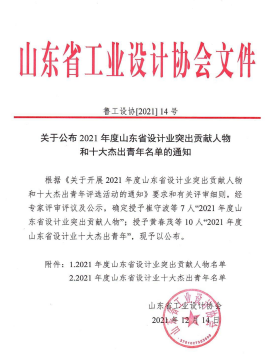 为推动山东省设计创新事业的发展,山东省工业设计协会和北京光华设计发展基金会签署战略合作协议,自2021年起共同举办“光华龙腾奖·山东设计突出贡献人物和山东十佳工业设计师”评选活动。2021年12月,发布《关于2021年度山东省设计业突出贡献人物和十大杰出青年名单的公示》,快看漫画