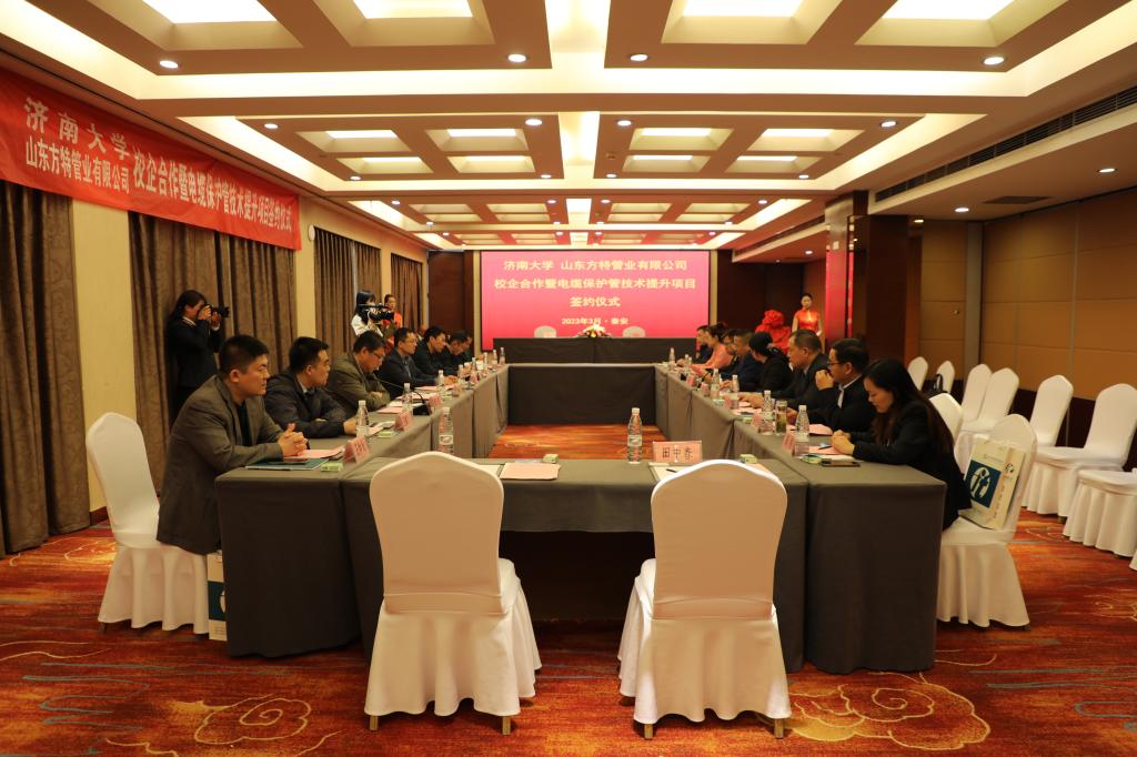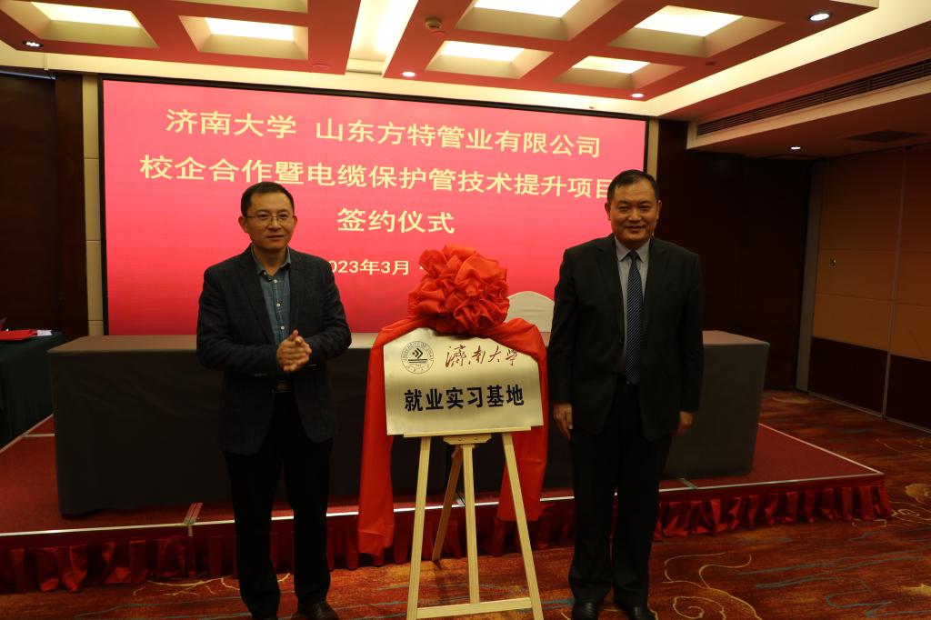 山东方特管业有限公司董事长谢纪岭作详细介绍了企业的概况,企业使命、发展历程、企业现状及企业所获得的荣誉。希望双方丰富合作,在人才培养、项目研发等方面开展全面合作!