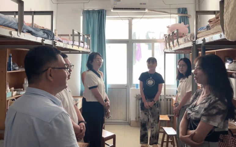 为及时了解2024级新生入学情况及思想动态情况,帮助同学们尽快适应大学的学习生活,9月3日,学院党委书记陈春锋,副院长杨海波,党委副书记、副院长何贵亮和辅导员王琦、李欣一行走进2024级新生所在的学10和学15宿舍,看望慰问刚步入大学校园的美术与设计学院的同学们。
