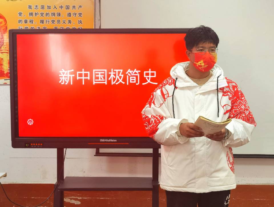 此次会议学习了《新中国极简史》,介绍了相关的党史书目。《新中国极简史》中记载了无数共产党人为实现共产主义的远大理想,不惧艰难困苦、不畏流血牺牲、艰苦奋斗的光辉事迹。会议通过观看红色影片、阅读党史书目等形式让同学们意识到自己承担的时代责任和使命,深深领悟到周恩来“为中华之崛起而读书”的伟大精神,感悟到历史使命感和社会责任感。同学们仔细观看党史解说,沉浸在当年悲壮的奋斗历史当中,仿佛正亲身经历着一场惊心的奋斗历程。会议结束后,大家纷纷表示要多学习《新中国极简史》,自觉接受红色传统教育,不断感悟,巩固和升华理想信念。真正做到学史明理、学史增信、学史崇德、学史力行。