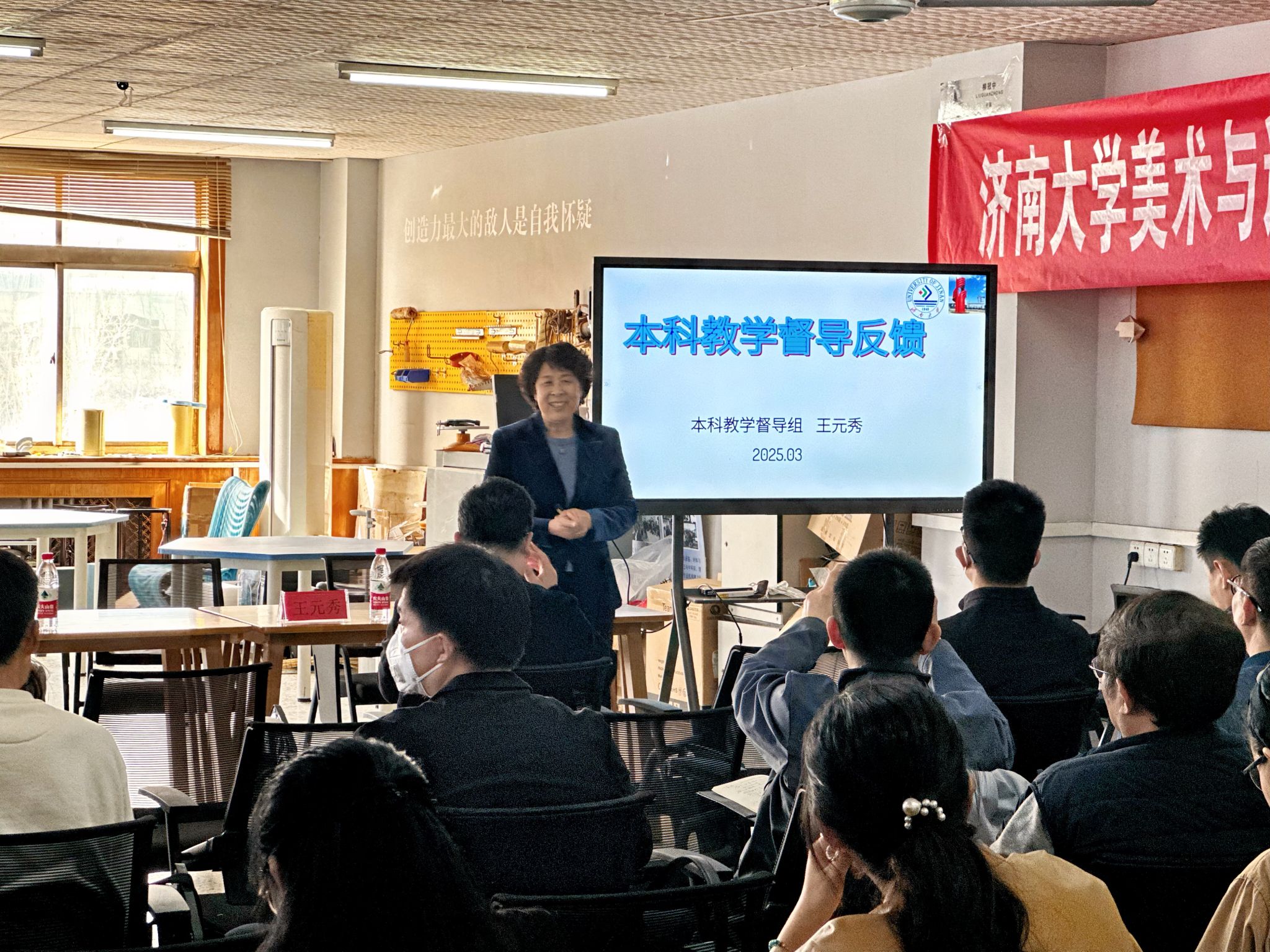 为进一步推动学院本科教学质量稳步提升,3月25日下午,美术与设计学院举行本科教学督导反馈会,教务处副处长、教学质量与评估办公室副主任张杰,本科教学督导组组长王元秀,学院领导班子,学院本科教学督导员和全体教师参加活动。会议由美术与设计学院副院长杨海波主持。