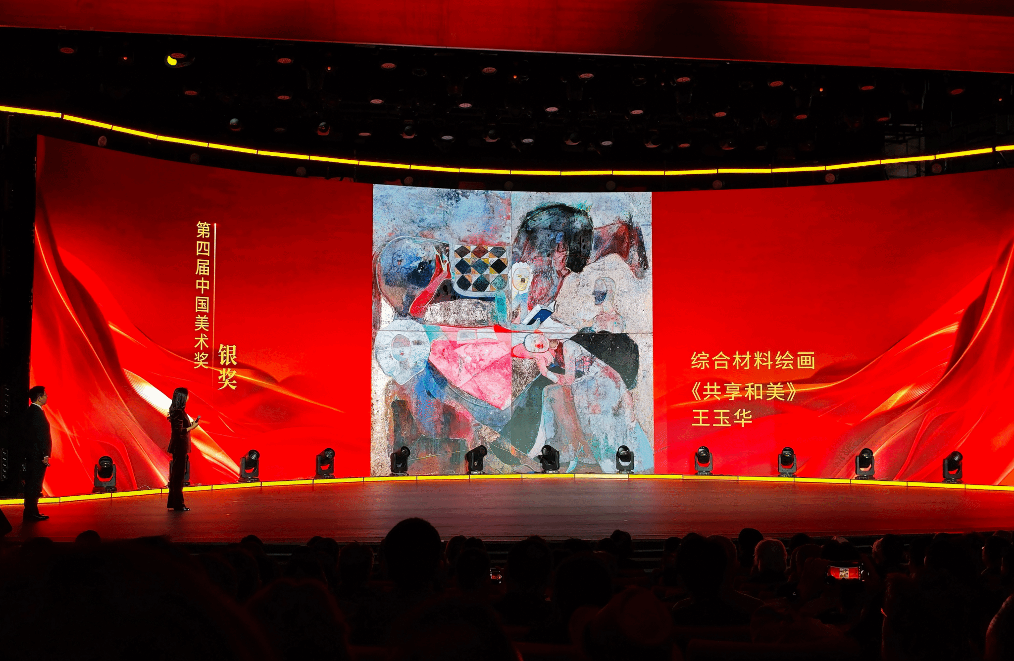 在“中国美术奖”颁奖仪式上,我省作者表现出色,共取得两银一铜的优异成绩。其中,济南大学美术与设计学院美术系综合材料绘画教研室主任王玉华副教授的综合材料绘画作品《共享和美》,荣获第四届“中国美术奖”银奖,这不仅是全国十四届美展综合材料绘画领域的最高奖项,更代表着我校美术综合材料绘画首次在“中国美术奖”评选中取得重大突破,为我校赢得了极高的荣誉与肯定。