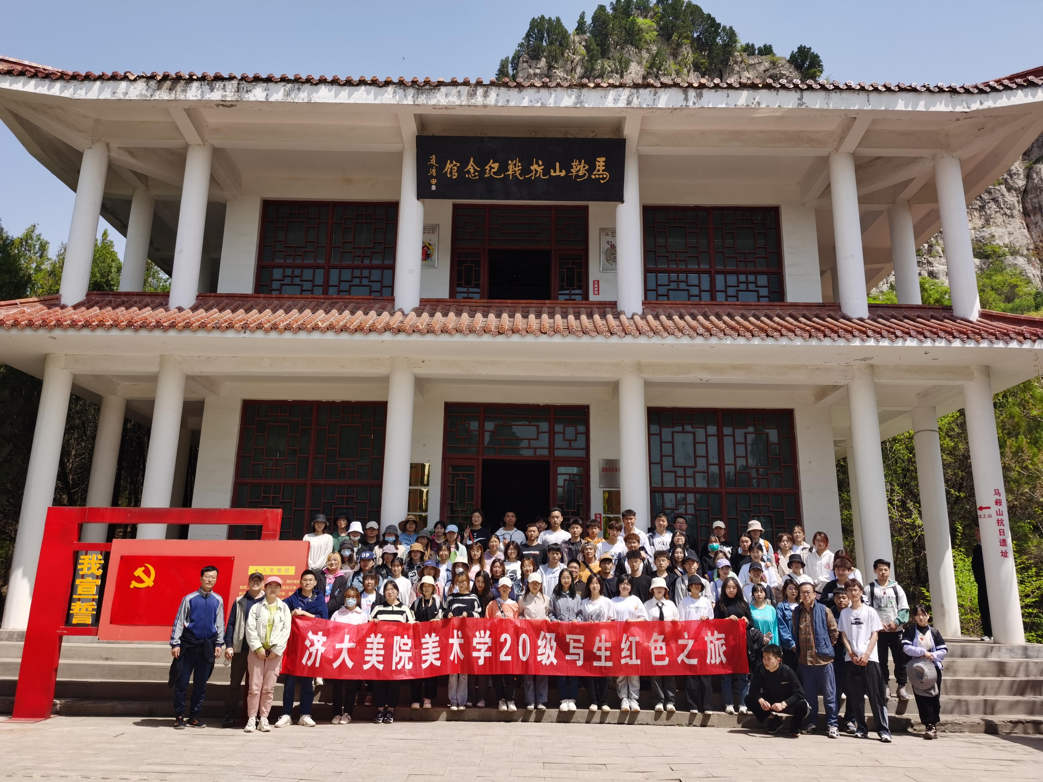 2021年4月28日,济南大学美术与设计学院教工第一党支部的林波老师、李甲老师、马立洪老师,利用在淄博峨庄带学生讲授写生课程期间,带领美术学2020级的89名学生,赴淄博市淄川区马鞍山抗日革命遗址开展了主题创作活动。