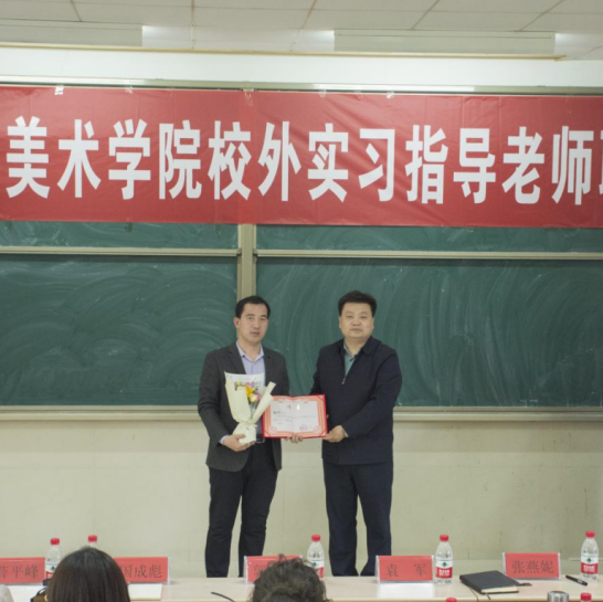 会议第一阶段为聘任仪式,孙成豪书记、刘军书记、赵忠超副院长分别为13位校外实习指导教师颁发了聘书。赵忠超副院长介绍了济南大学美术学院的办学历史、美术学师范专业特色与近年来取得的教学成果,并对美术学专业的人才培养方案做了详细的说明。校外实习指导教师代表——山大辅仁学校教师许孔重、校内实习指导教师代表——美术系副主任马立洪,学生代表——油画2001班刘执昊依次发言。