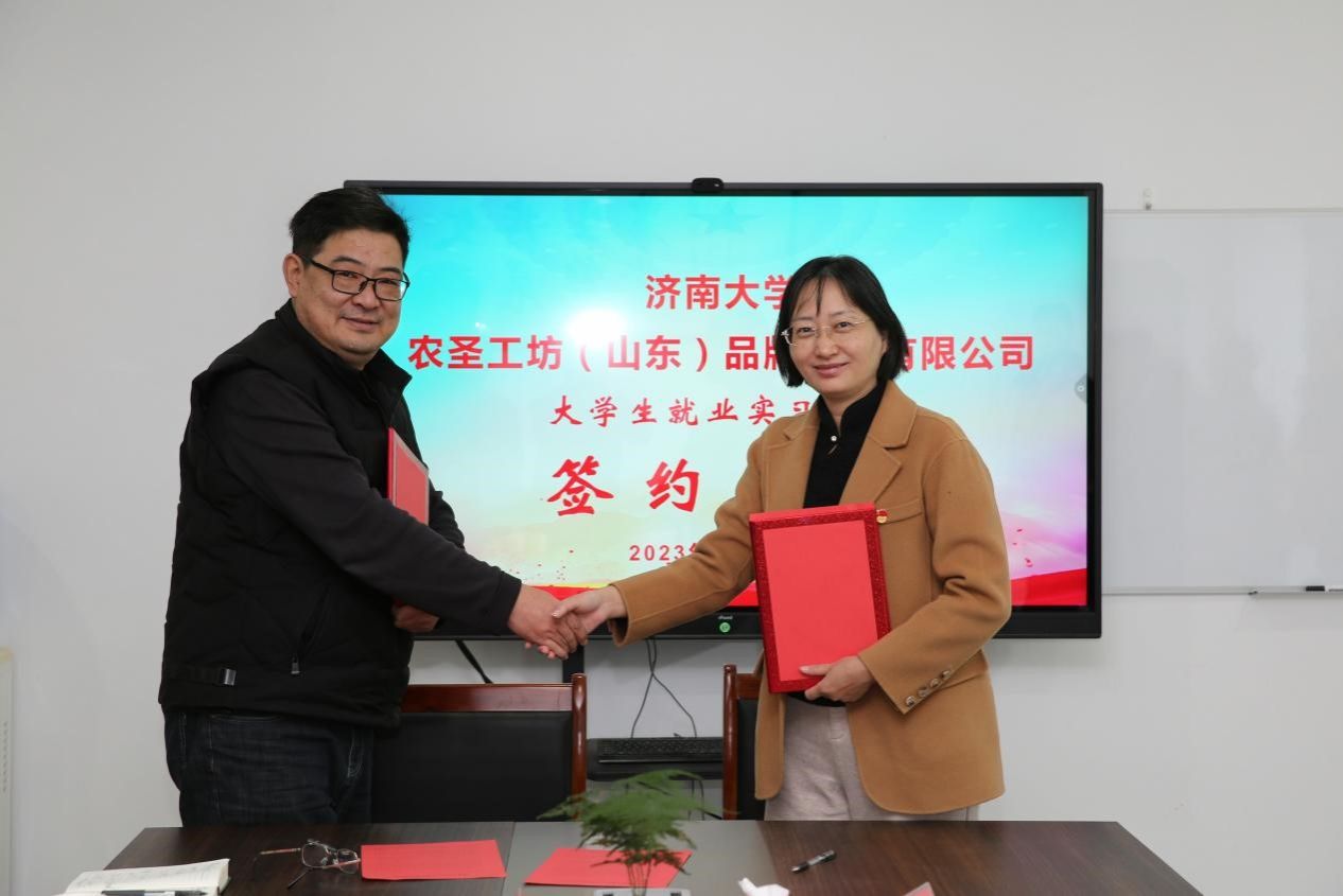 最后,济南大学美术与设计学院与农圣工坊(山东)品牌管理有限公司有限公司共同签订大学生就业实习基地协议书。