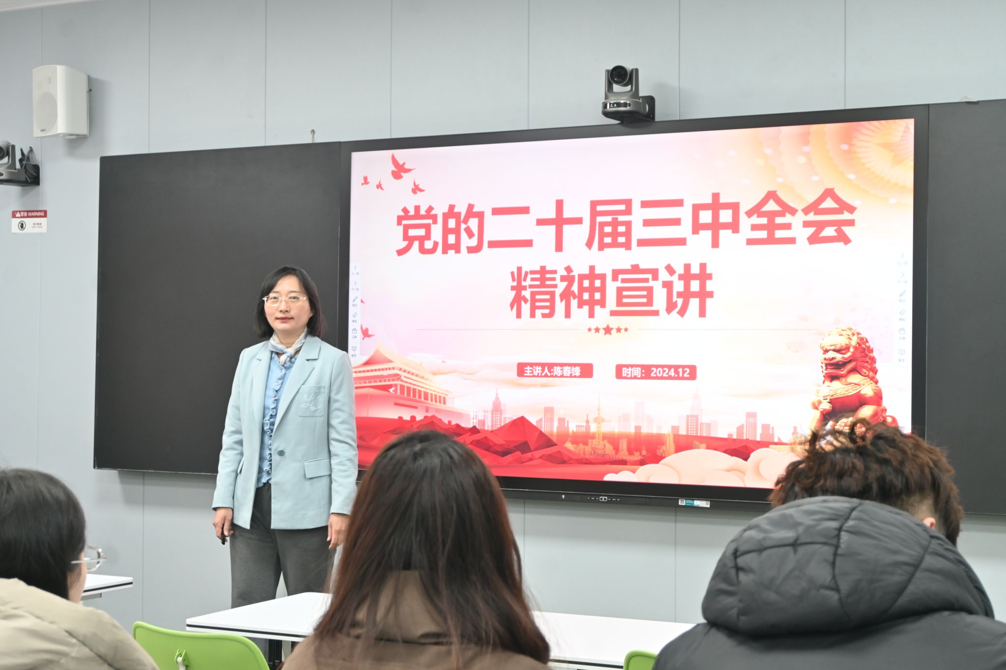 为深入学习贯彻党的二十届三中全会精神和习近平总书记重要讲话精神,认真学习《中共中央关于进一步全面深化改革、推进中国式现代化的决定》,学院党委书记陈春锋开展学习贯彻党的二十届三中全会精神宣讲。学院党员及入党积极分子参加活动。
