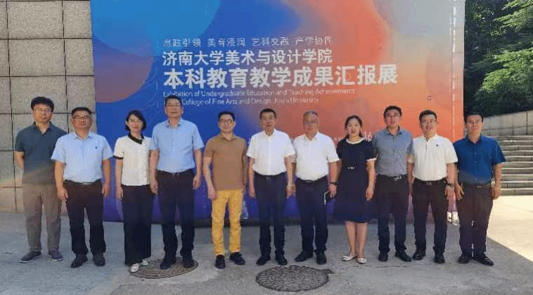 科技处处长颜梅、副处长王传平、美术与设计学院党委书记陈春锋,副院长杨海波,党委副书记、副院长何贵亮,副院长赵忠超,院长助理桑曙光及工业设计系、产品设计系、院实训中心负责人陪同参观了学院“思政引领、美育浸润、艺科交融、产教协同-本科教育教学成果汇报展”。