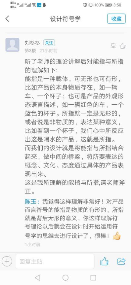 从互动截图中我们可以看到,学生们根据专业方向内容可以在不同的组里交流提问。另外,网上教学已经突破了上课时间的限制,学生们全天都可以进行专业交流。
