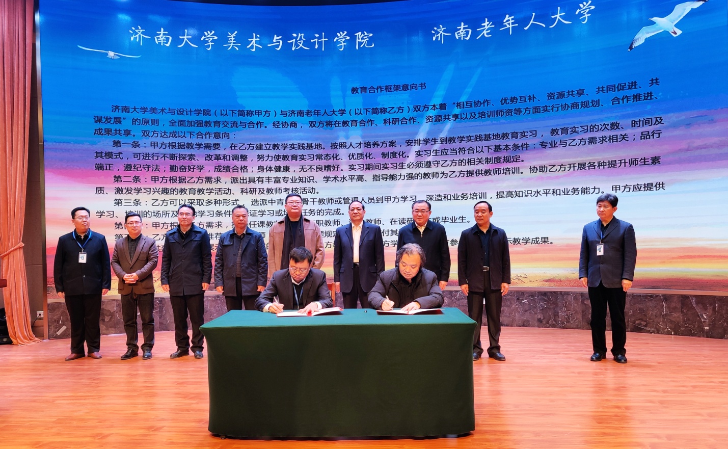 省市一体化校校联合共建共享签约暨社区文艺骨干培训,本着“相互协作、优势互补、资源共享、共同促进、共谋发展”的原则,全面加强教育交流与合作,提升整体教育服务水平。济南大学美术与设计学院也将以此为契机,同济南老年人大学紧密联系,资源共享,寻求特色办学模式,助力学院特色立院,服务社会,不断探索产学研协同创新体系,助力学生成长成才和学院发展。
