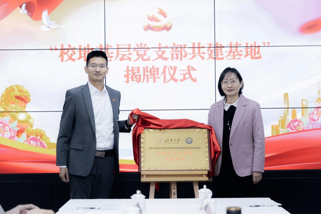 为积极探索基层党建工作新途径,实现党组织优势互补,探索校企党建共建新模式,努力构建“资源共享、优势互补、互相促进、共同提高”的党建工作新格局。美术与设计学院与济南市新生代企业家联谊会开展“党建共建、发挥合力、共赢未来”的党建共建活动。12月22日,美术与设计学院与济南市新生代企业家联谊会举办“校地党建基地共建”签约揭牌仪式。学院党委书记陈春锋,副书记、副院长何贵亮,副院长赵忠超和学办主任王鹏飞出席仪式,济南市工商联协会党委办公室主任靳峰,济南市新生代企业家联谊会党支部书记班春雷和联谊会支部委员参加活动。