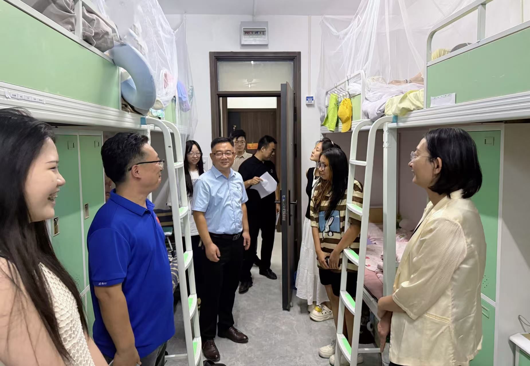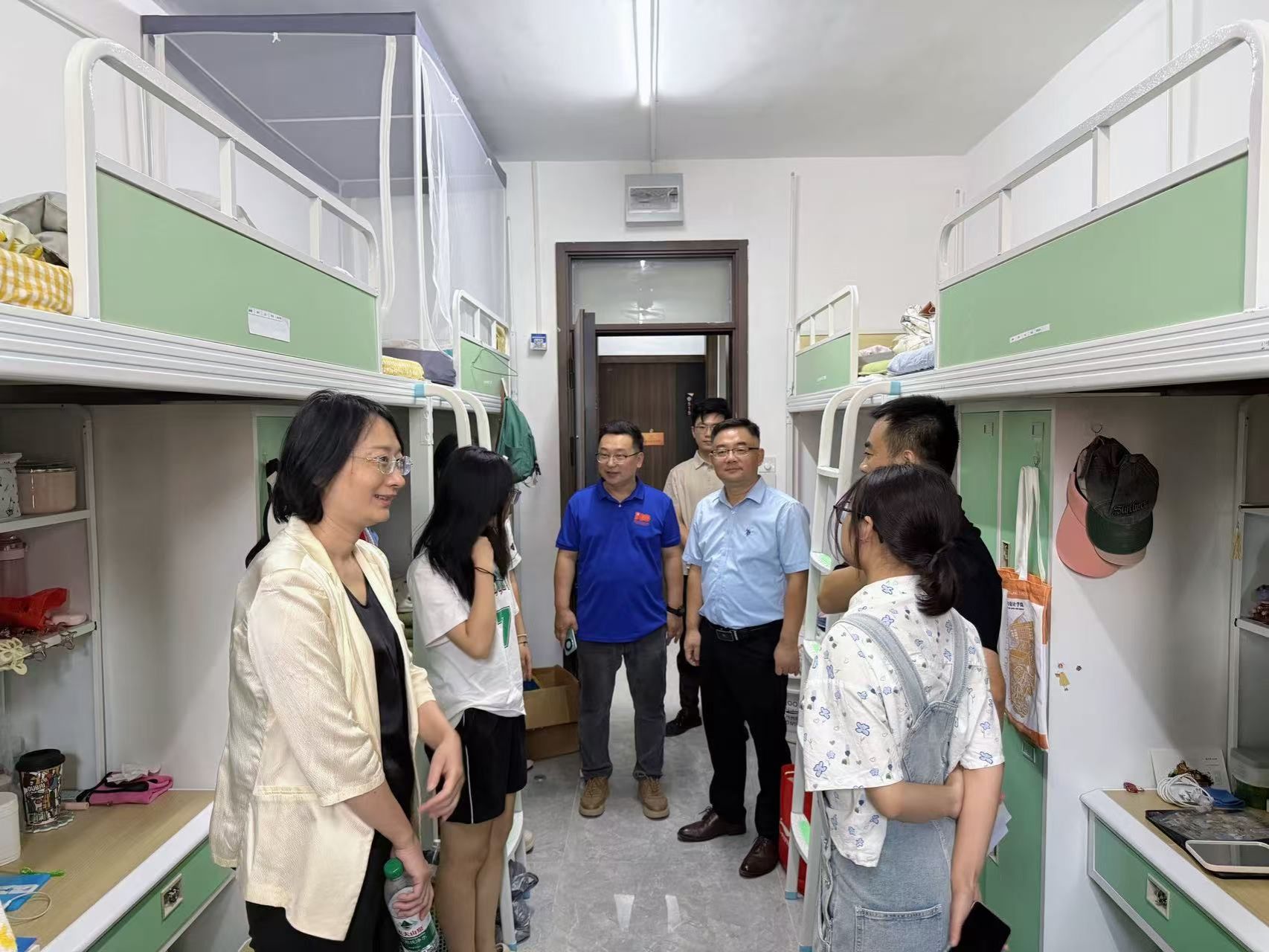 为全面掌握2025级新生的入学适应状态和思想动态,帮助同学们尽快适应新环境、融入新集体、开启新生活,9月10日下午,学院党委书记陈春锋,副院长杨海波,党委副书记、副院长何贵亮带队走访学4、学5宿舍楼,看望并慰问新入学的同学们
