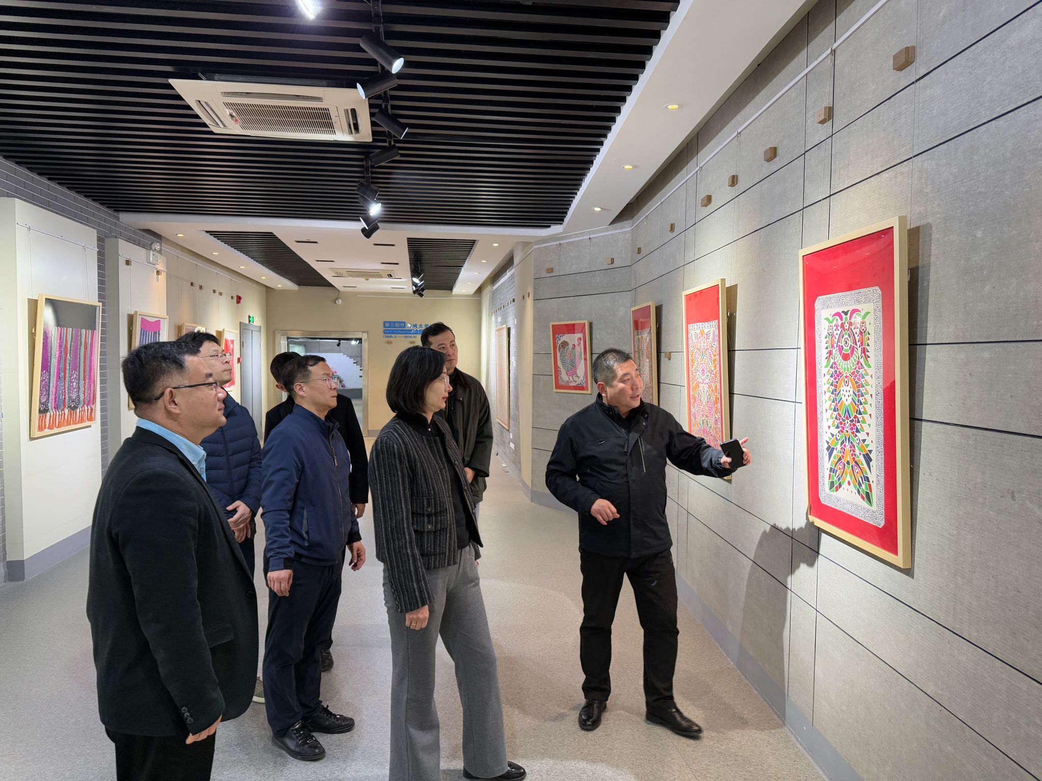 会后,调研组一行参观了聊城大学美术与设计学院的展览室、工作室以及正在举办的黄河下游民众服饰展,实地观摩学院的办学实力和文化底蕴。