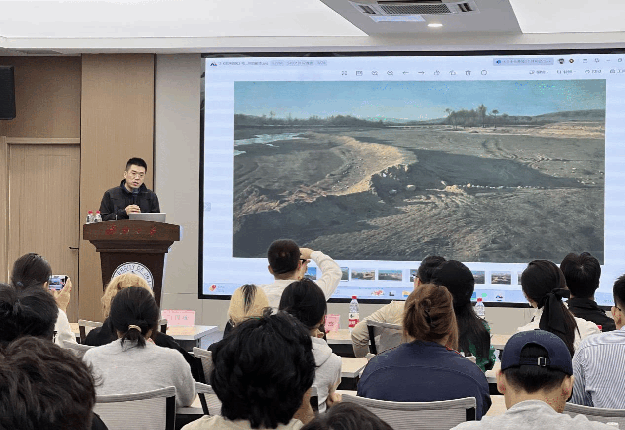 10月15日由美术与设计学院承办的济大论坛“浅谈现实主义绘画”在第十教学楼第五会议室举行,讲座由中国美术家协会会员、成都画院画家胡国栋主讲。烟台东信博文文化发展有限公司董事长、烟台油画学会副主席郑洪杰,美术与设计学院党委书记陈春锋、副院长杨海波及美术与设计学院师生150余人参加讲座。讲座油画教研室主任林波主持。
