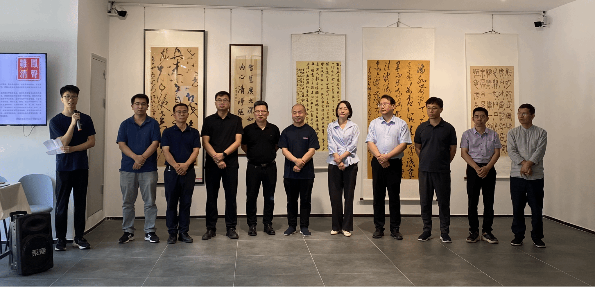 6 月 27 日,济南大学美术与设计学院书法微专业结业作品展在艺美空间举行。济南诚励书画教育学校校长梁成立,学校教务处副处长张海坤、学生工作处副处长张晶,美术与设计学院党委书记陈春锋、副院长杨海波、副院长赵忠超、院长助理桑曙光、美术系主任陈炜以及书法微专业的师生们共同参加了开幕仪式。