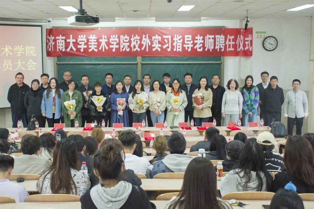 2023年4月25日,济南大学美术学院校外实习指导教师聘任仪式暨教资考试动员大会在11J6202召开,美术学院党委书记孙成豪、正处级组织员刘军、副院长赵忠超、教学管理办公室和美术系师生代表等相关人员参加了此次会议,会议由美术系主任陈炜主持。