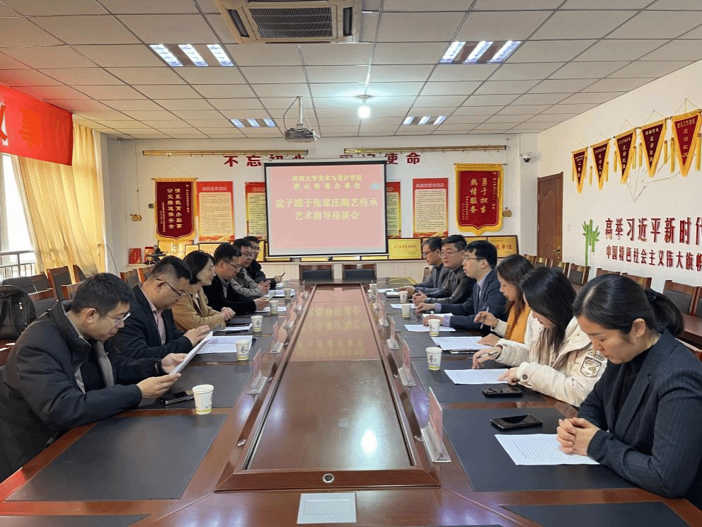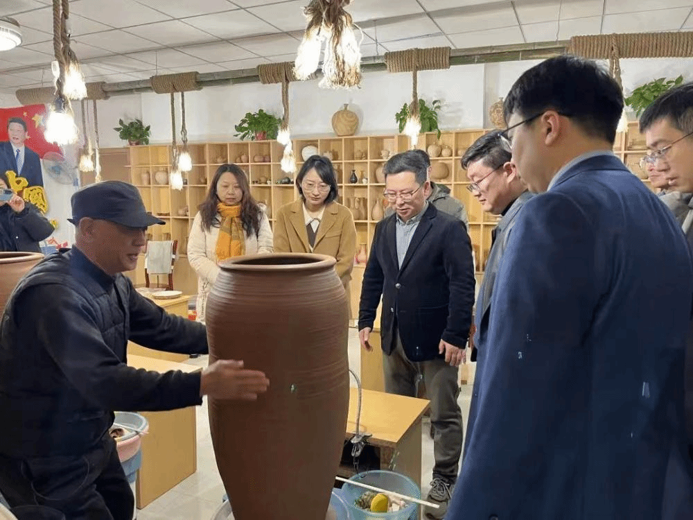 座谈会上,王政首先对美术与设计学院一行的到来表示了热烈的欢迎,并就腊山街道发展“康养经济”的定位和政策进行了详细阐述,希望藉此机会加深校地合作关系。张家庄村党支部书记李保勇就村庄的历史沿革、党建阵地打造、制陶产业发展等情况等方面进行了介绍。在调研过程中,美术与设计学院一行参观了张家庄村党群服务中心,深入陶器制作现场,实地查看了制作流程,与手工艺人进行了交流。