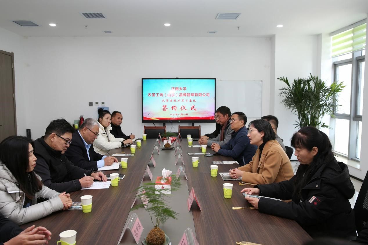 最后,济南大学美术与设计学院与农圣工坊(山东)品牌管理有限公司有限公司共同签订大学生就业实习基地协议书。